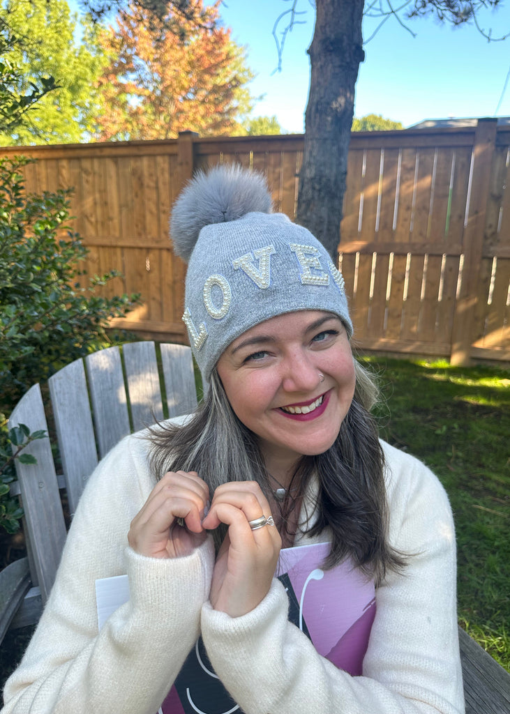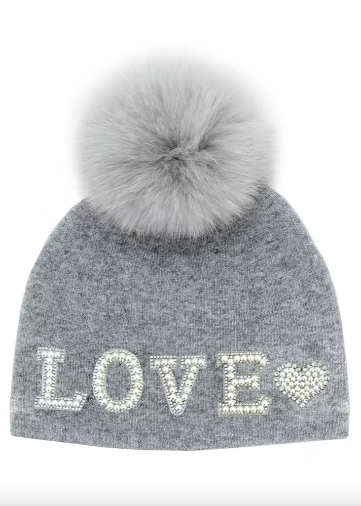 Stay cozy while spreading a little extra love this season. Our Love Toque is adorned with shimmering pearl accents that spell out LOVE, making it both playful and elegant. Topped with a genuine fox fur pompom, it adds the perfect touch of luxe flair to your winter wardrobe.