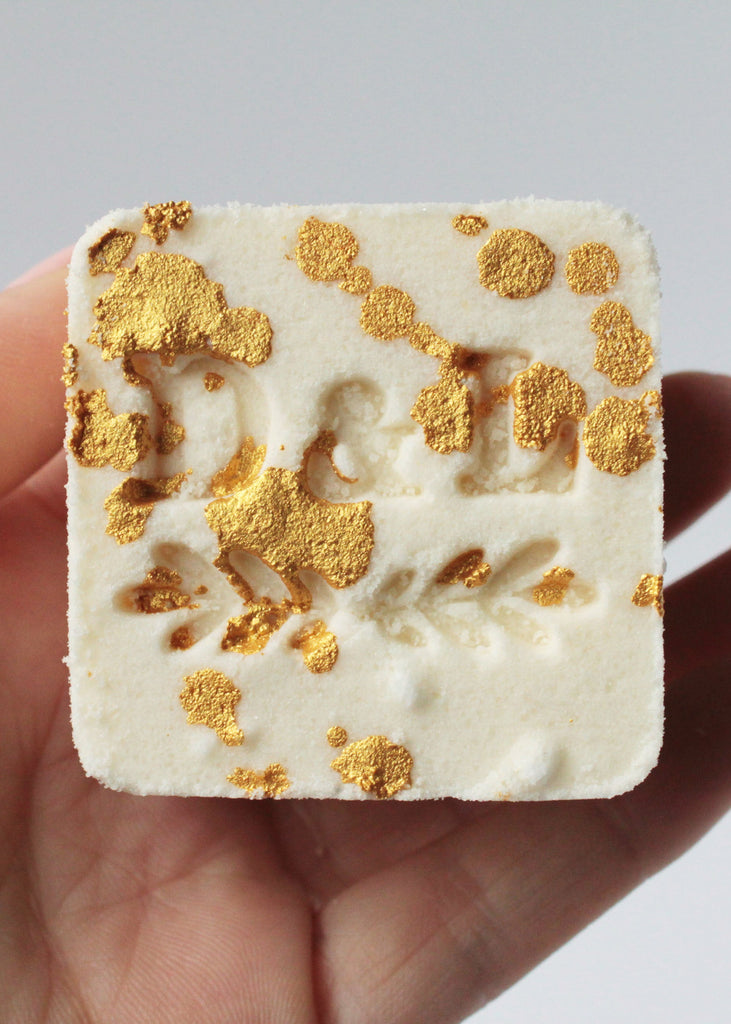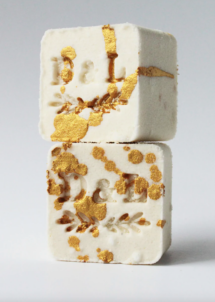 Add cube to bath water and watch it fizz, dispersing a rich moisturizing blend of milk and real flower petals. Individual cubes come in a pretty box.
