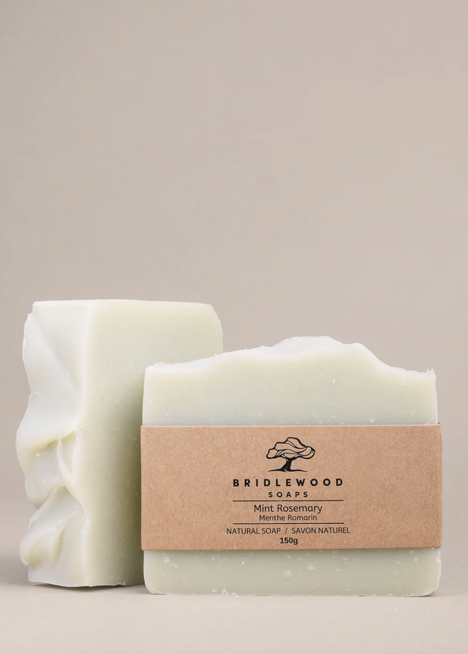Ingredients: Cocos Nucifera (Coconut) Oil, Elaeis Guineensis (Palm) Oil, Olea Europaea (Olive) Oil, Water, Sodium Hydroxide (Lye), Mentha Piperita (Peppermint) Essential Oil, Rosmarinus Officinalis (Rosemary) Essential Oil, Montmorillonite (French Green Clay).